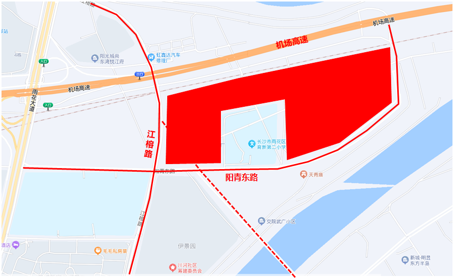 本項目位于長沙市雨花區(qū)高鐵板塊,處于陽青東路與江榕路交匯處東北角及育新第二小學兩側。東臨瀏陽河,南鄰陽青東路和伊景園小區(qū),西靠江榕路,北靠機場高速和京廣鐵路,南雅實驗中學在項目的西南角。項目西南側從西北往東南方向正在建設金桂路跨瀏陽河大橋。