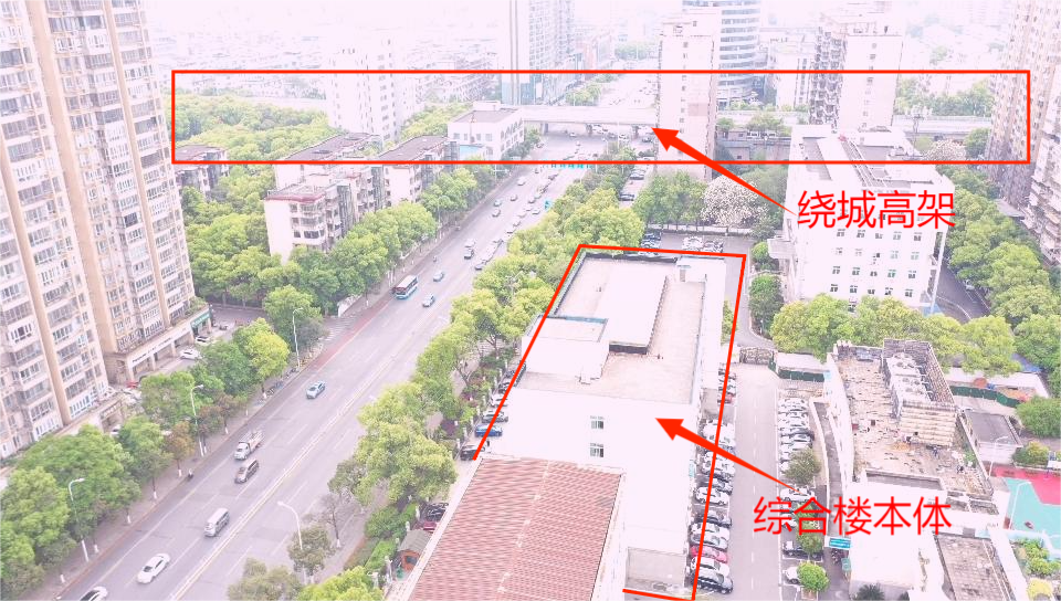 (綜合樓俯瞰圖)  (綜合樓周邊視圖)